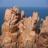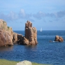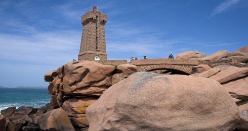 Niché entre de grands blocs de granit rose. Le long de la côte, des chemins permettent de marcher parmi ces blocs vers un phare de granit rose.